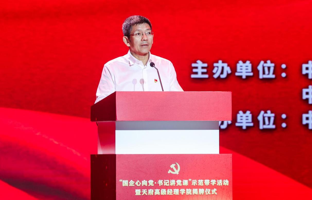 张正红在致辞中指出,近年来,省国资委党委认真贯彻落实党中央和省委全面加强国有企业党的领导、党的建设重要部署,坚持以高质量党建引领高质量发展取得积极成效。举办示范带学活动和天府高级经理学院揭牌,是国资国企一手抓党建、一手抓生产经营管理能力提升,推动党建与生产经营深度融合的生动实践。